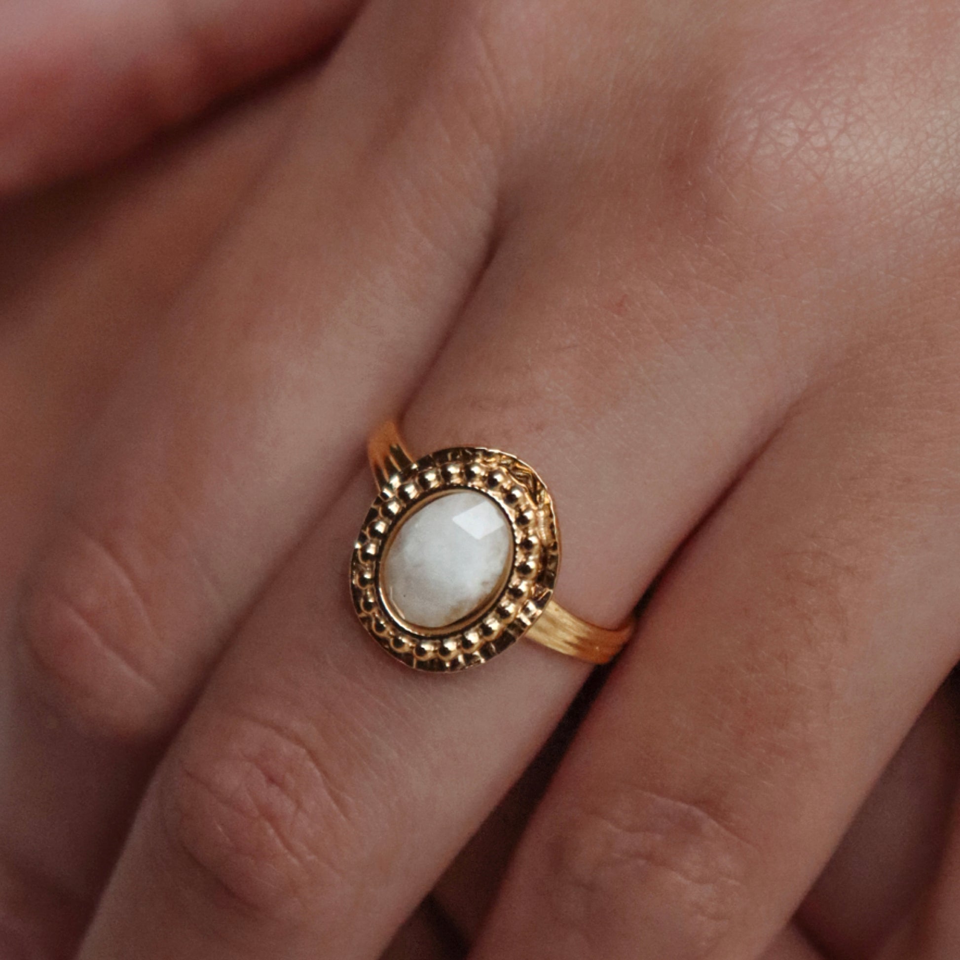 La magnifique bague Mira, en pierre de Lune naturelle, et acier inoxydable